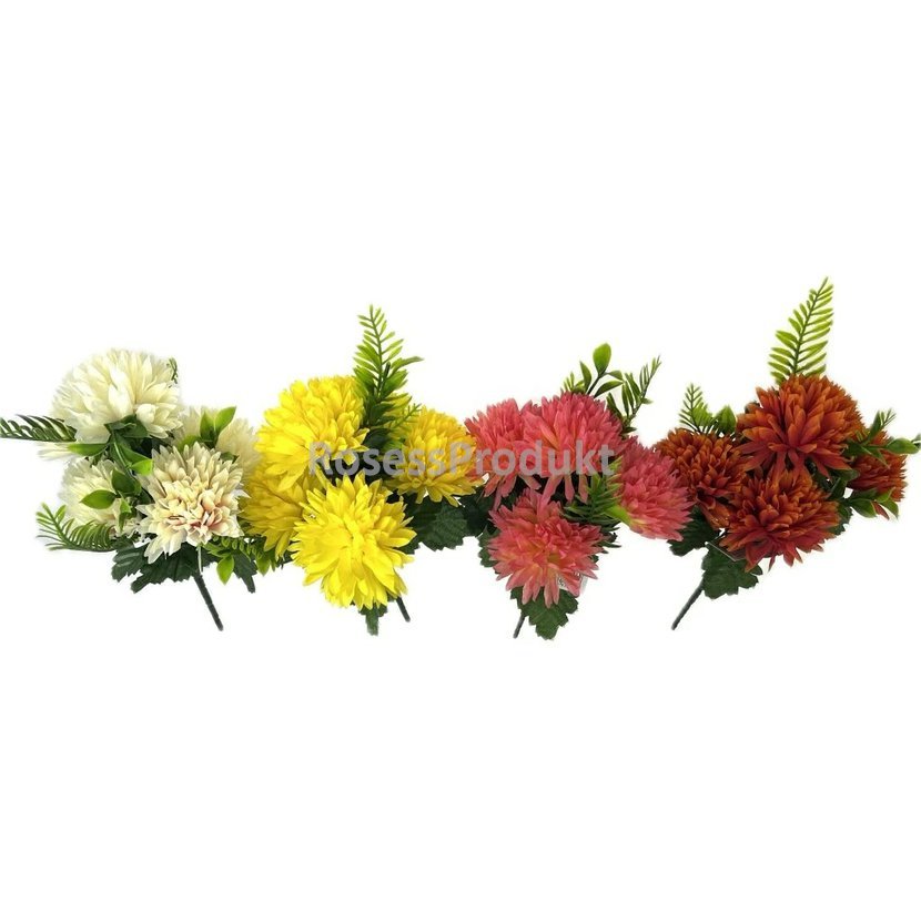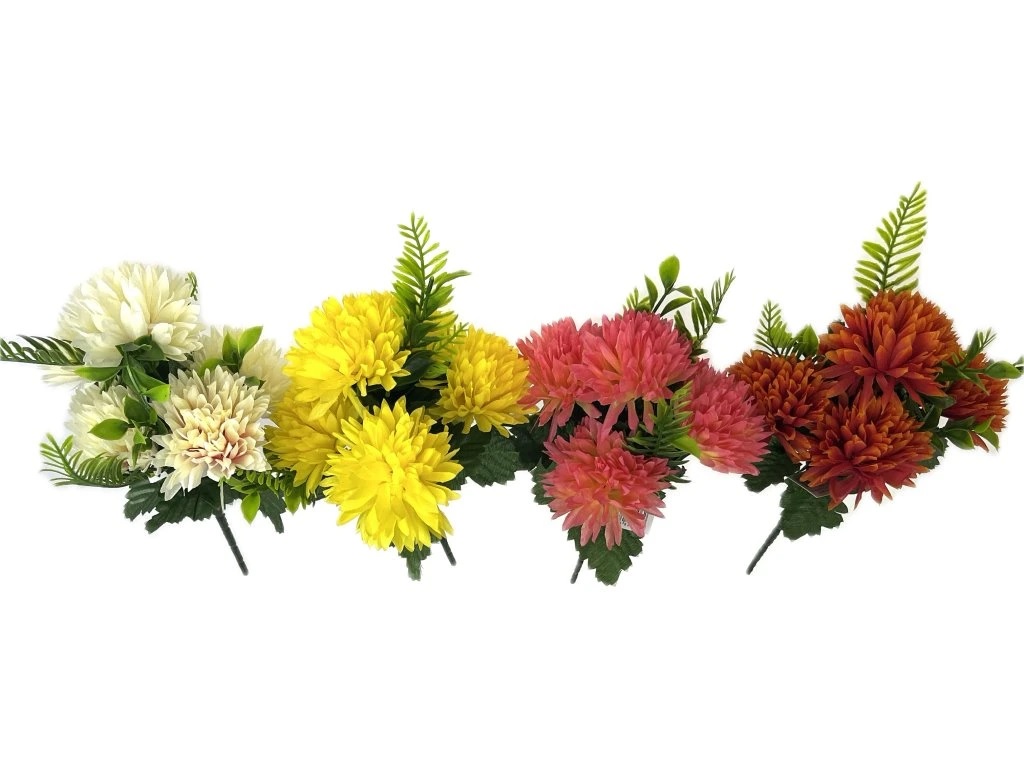 Chryzantéma umělá střapatá s kapradím smetanovorůžová x5 26 cm