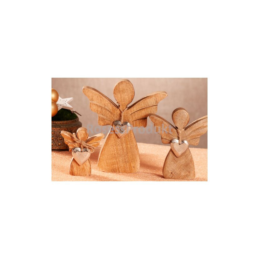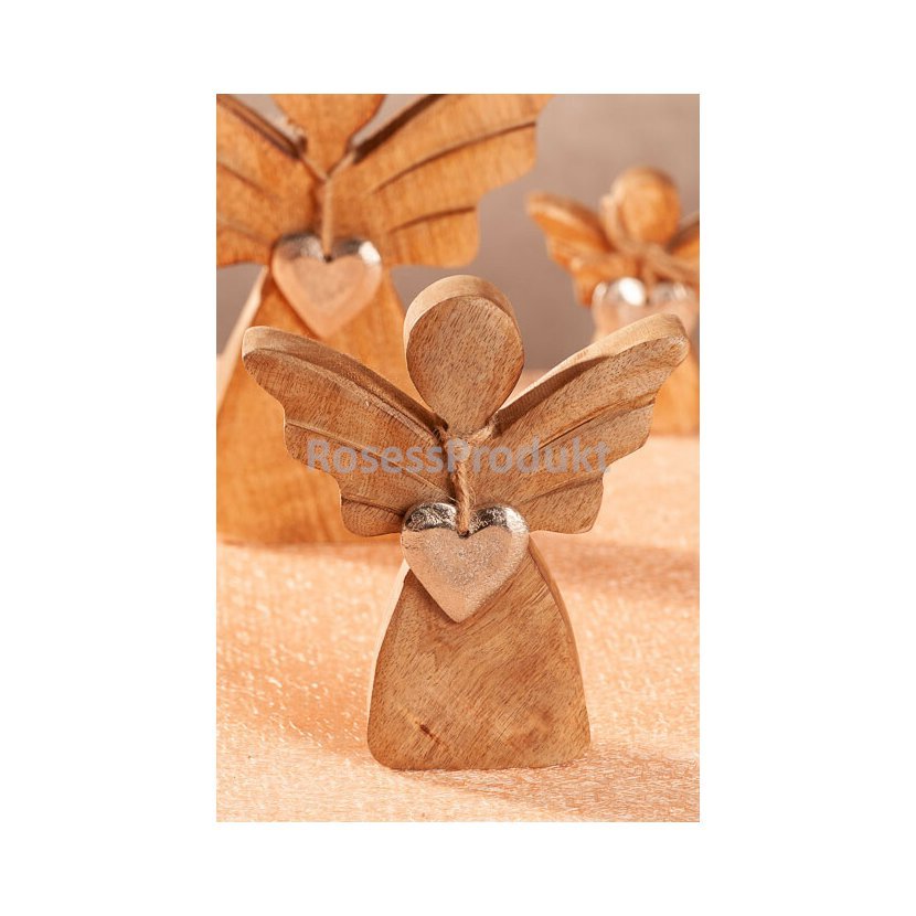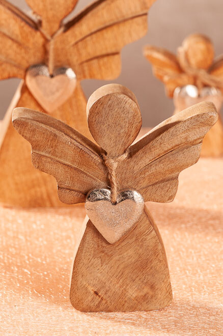 • Andílek z mangového dřeva se stříbrným srdíčkem