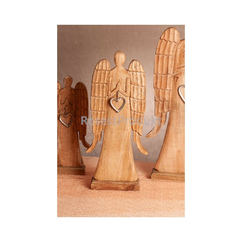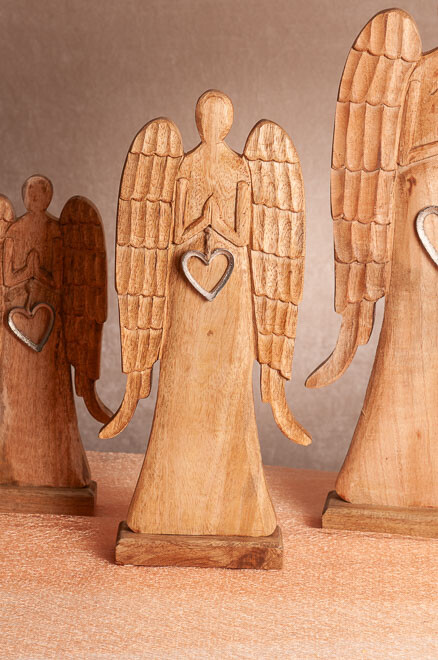 • Anděl z mangového dřeva se stříbrným srdíčkem