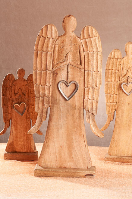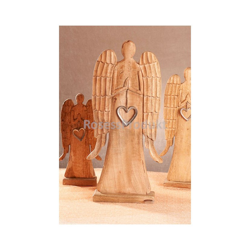 • Anděl z mangového dřeva se stříbrným srdíčkem