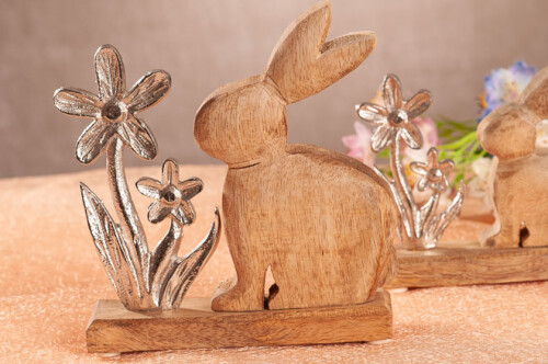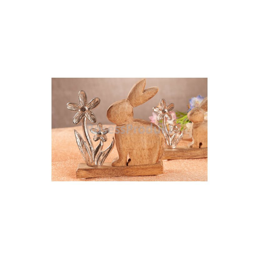 • Dřevěná zajíc z mangového dřeva s kovovou kytkou