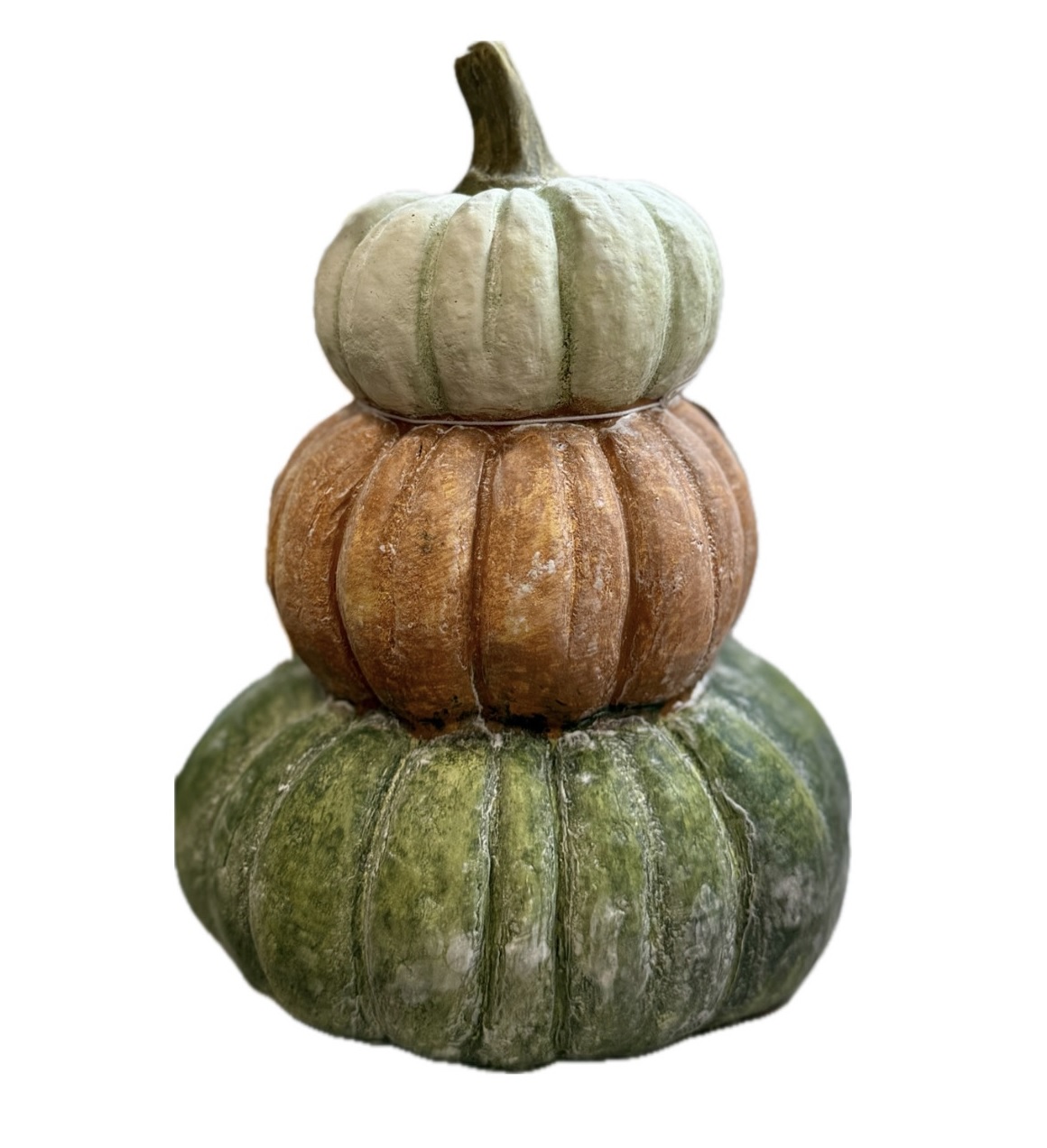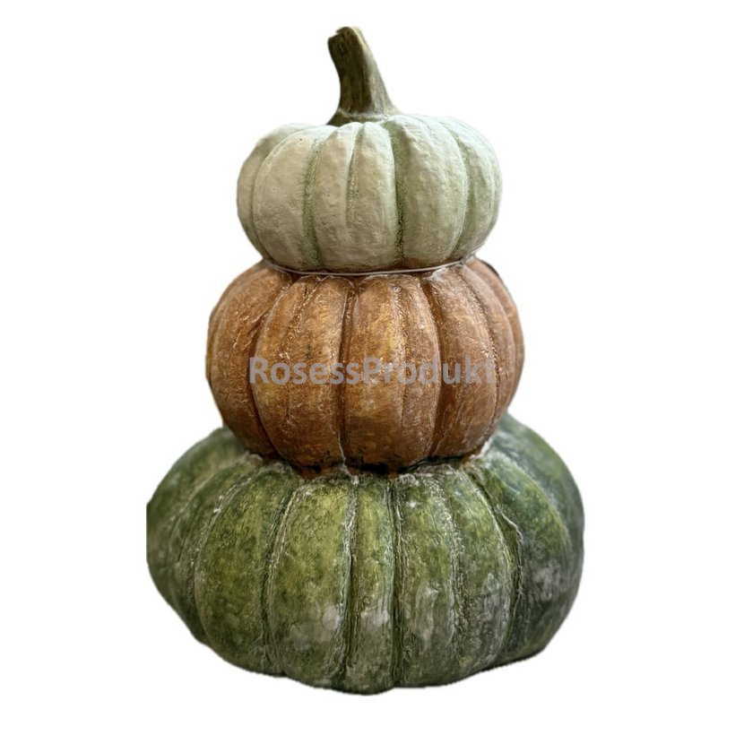• zelená s bílým melírem vespod, oranžová dýně uprostřed a nahoře zelenobílá dýně