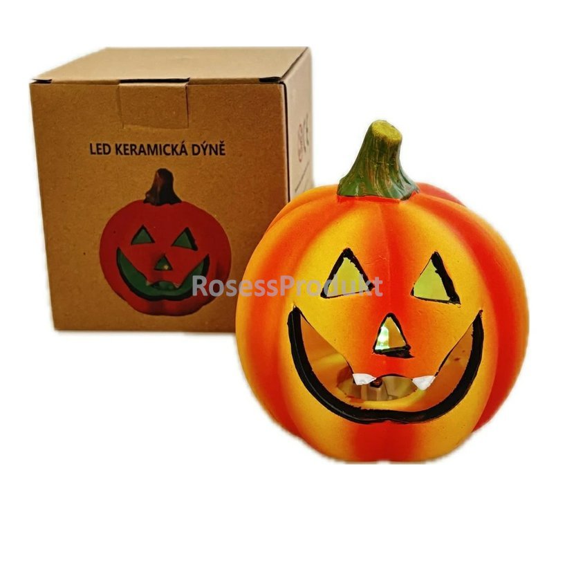 Dýně keramická kulatá s barevným LED v. 12 cm