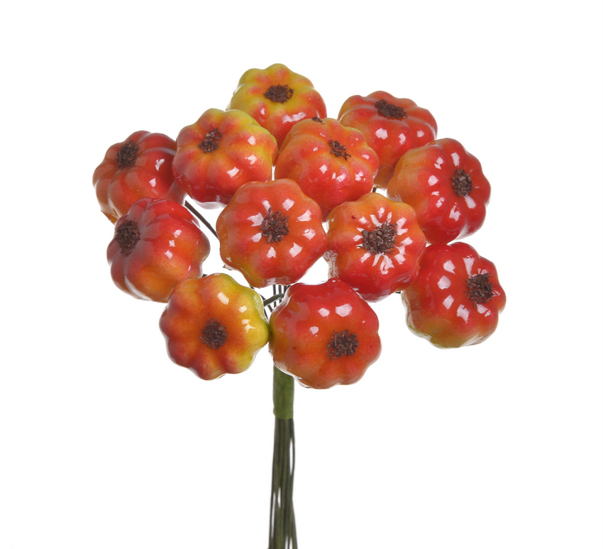 Dýně umělá na drátku zelenooranžové 2 cm 12 ks