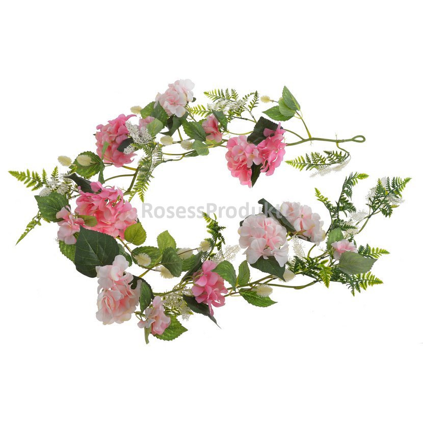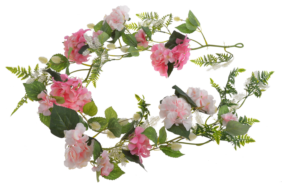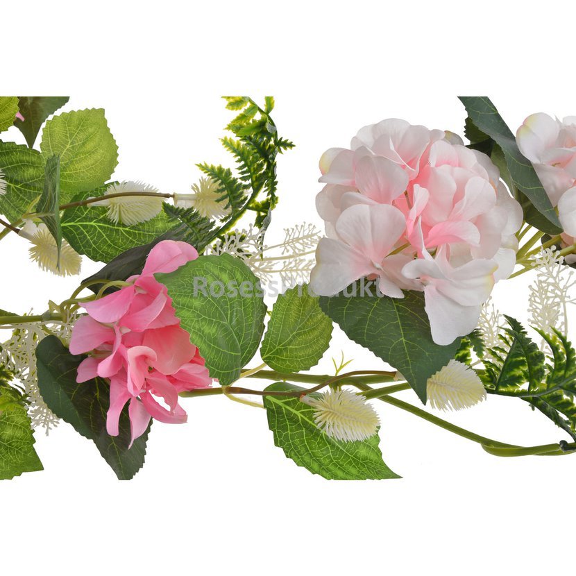 Girlanda umělá - Hortenzie růžová a bílorůžová 165 cm
