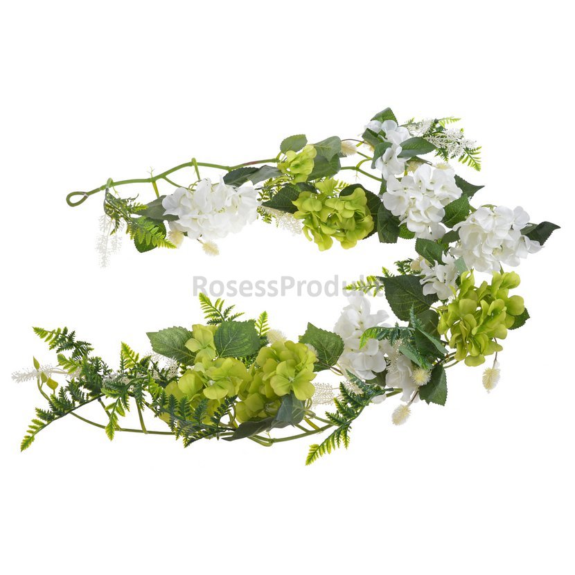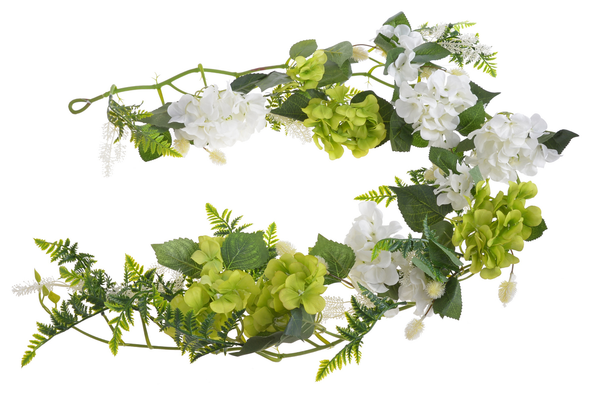 Girlanda umělá - Hortenzie zelená a bílá 165 cm