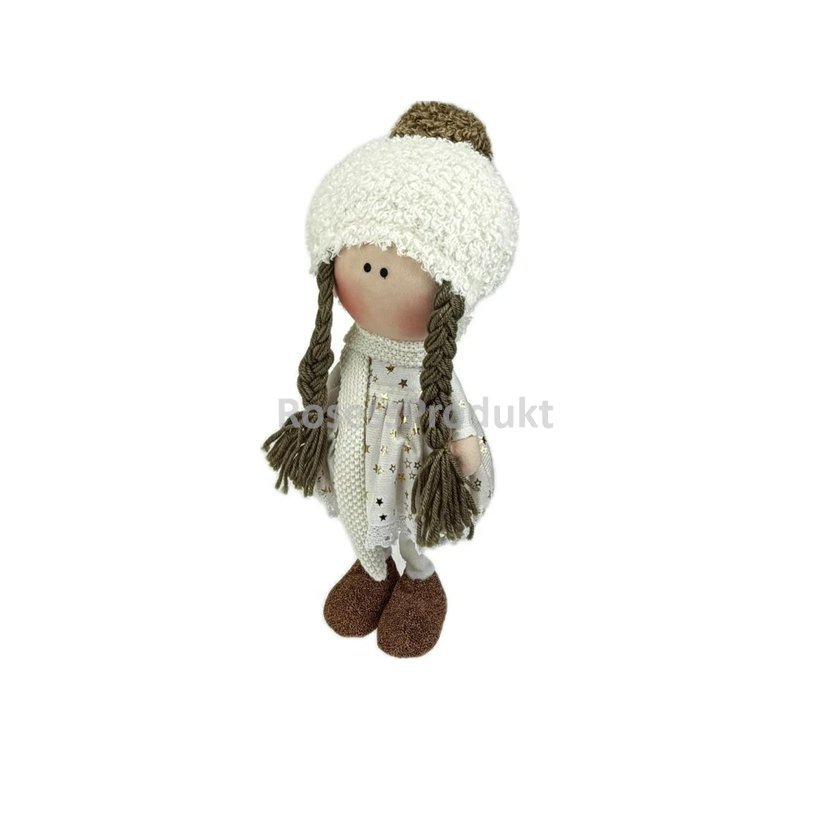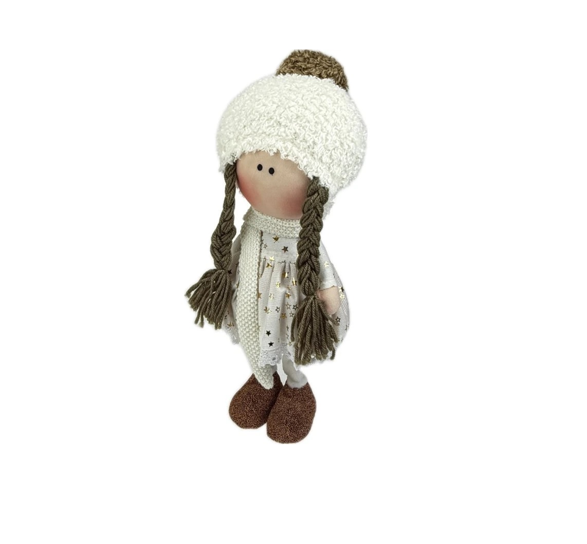 • Barva: šaty bílé se zlatými hvězdami, šála bílá, čepice bílá s hnědou bambulí, copy hnědé, boty hnědé s třpytkami