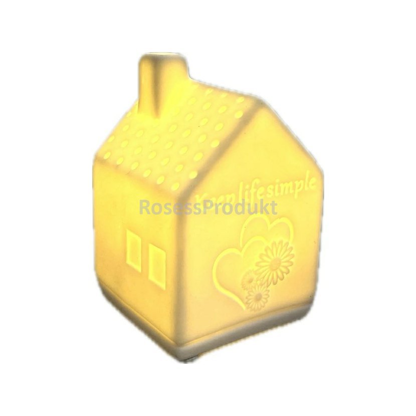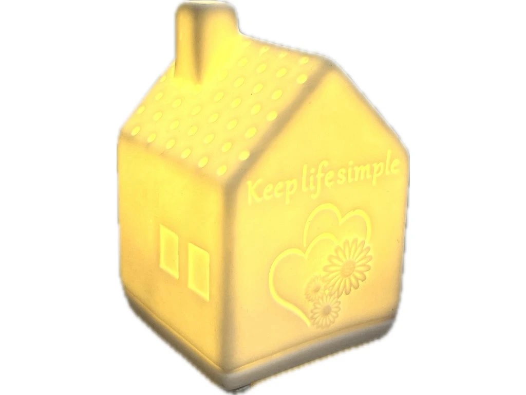 Keramický domeček LED 5,5 x 5,5 x 10 cm s nápisem