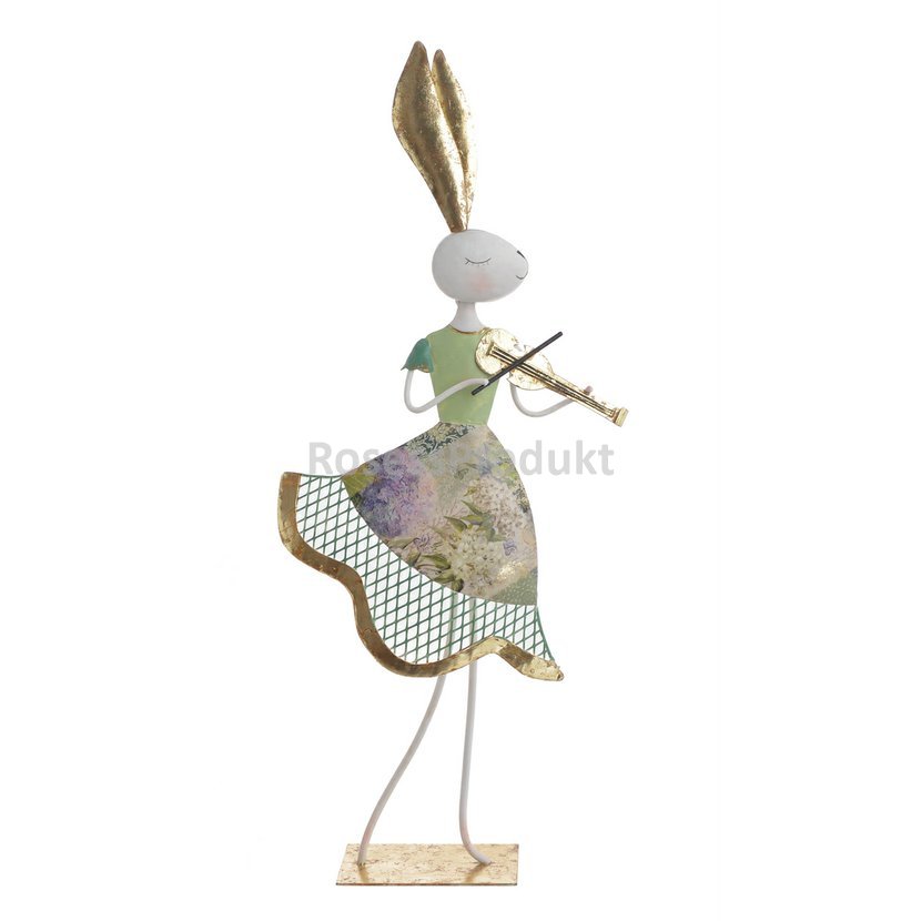• Kovová zaječice hrající na housle