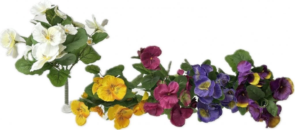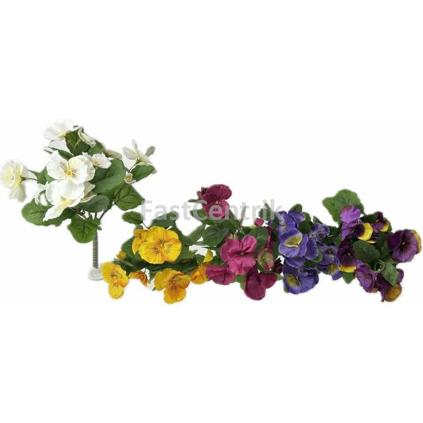 Macešky umělé tmavě fialovožluté velkokvěté trs x7 / 30 cm