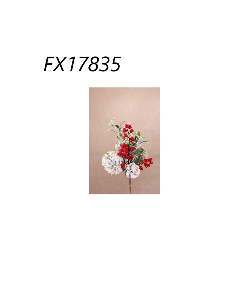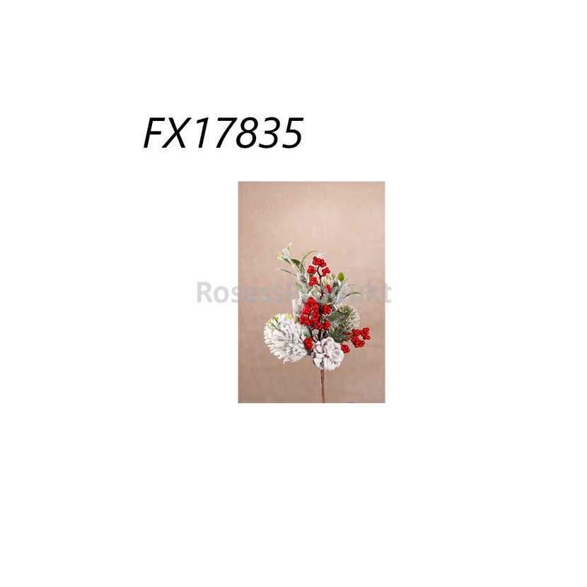 Větvička umělá zasněžené jehličí, bobulky a šiška 30 cm