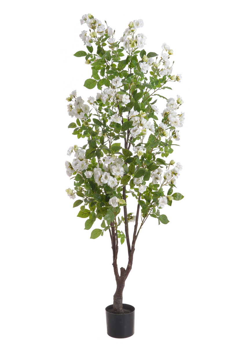 • Barva: kmen - hnědý, listy - zelené, květy - bílé
